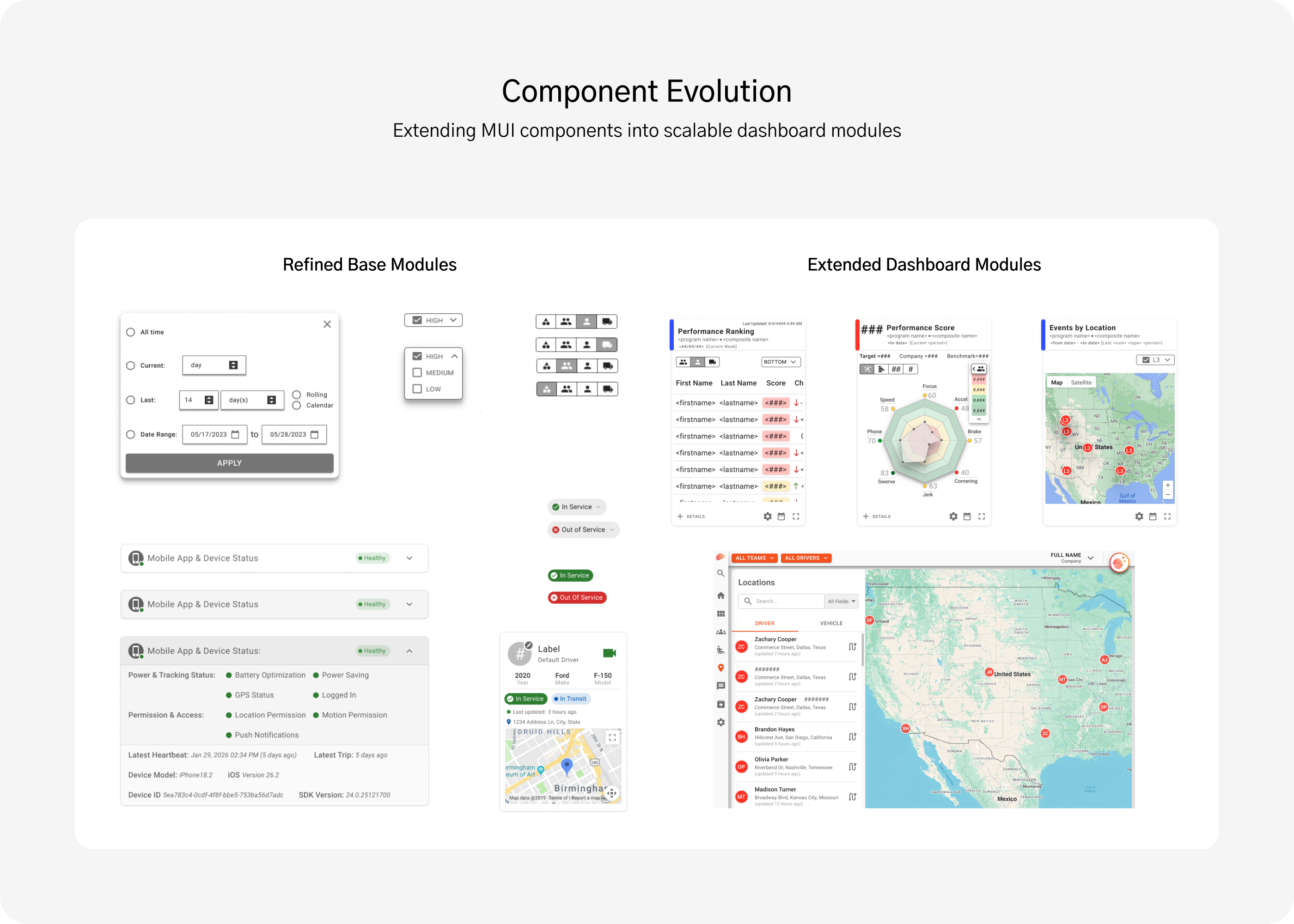Interactive prototypes simulated real-world scenarios including monitoring driver performance, managing routes, and completing daily operational tasks.